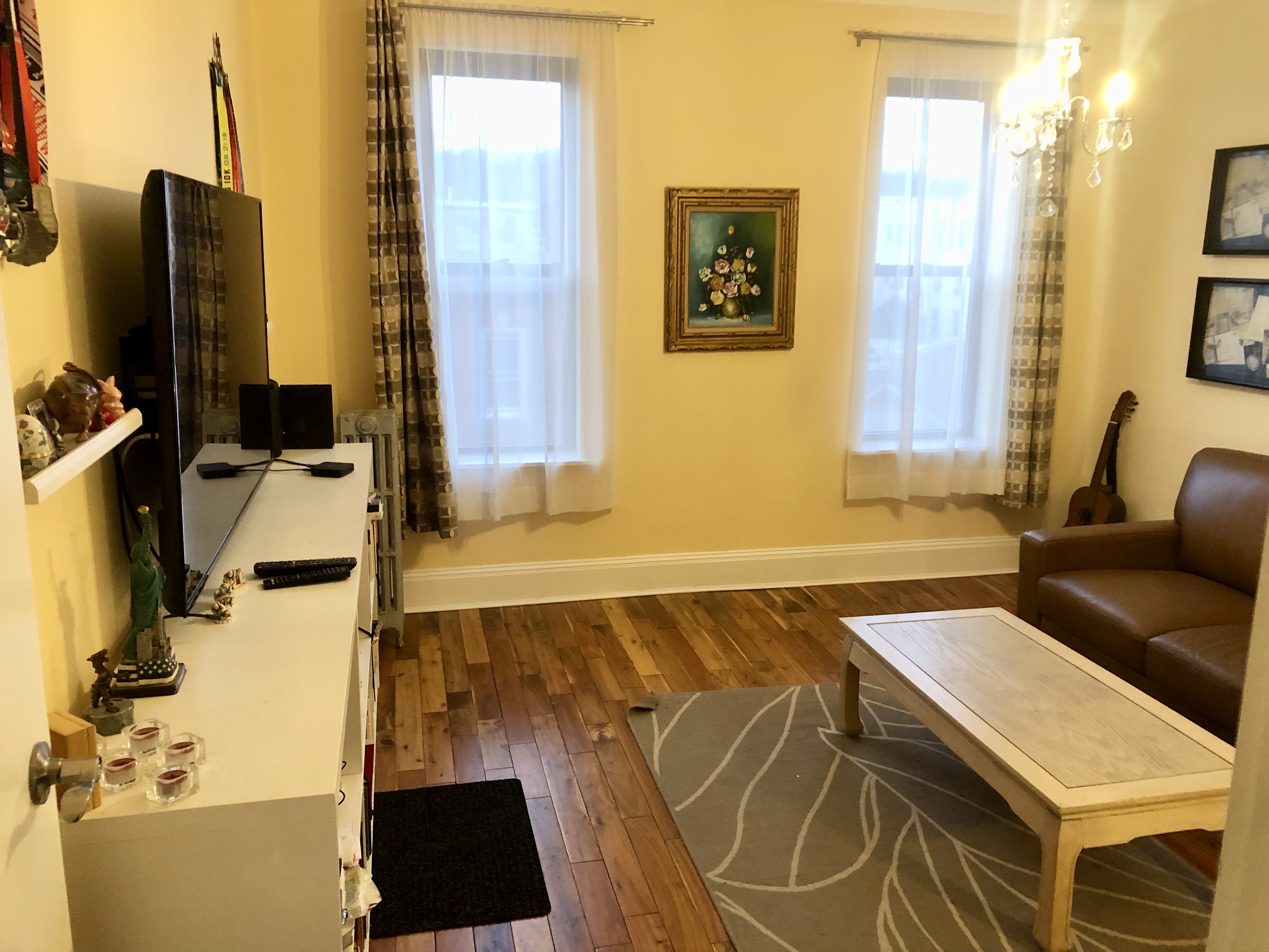 Newly renovated 4th floor apartment include: living room, bedroom, kitchen and bath. Located in 6 story pre-war building with the elevator and laundry in the building